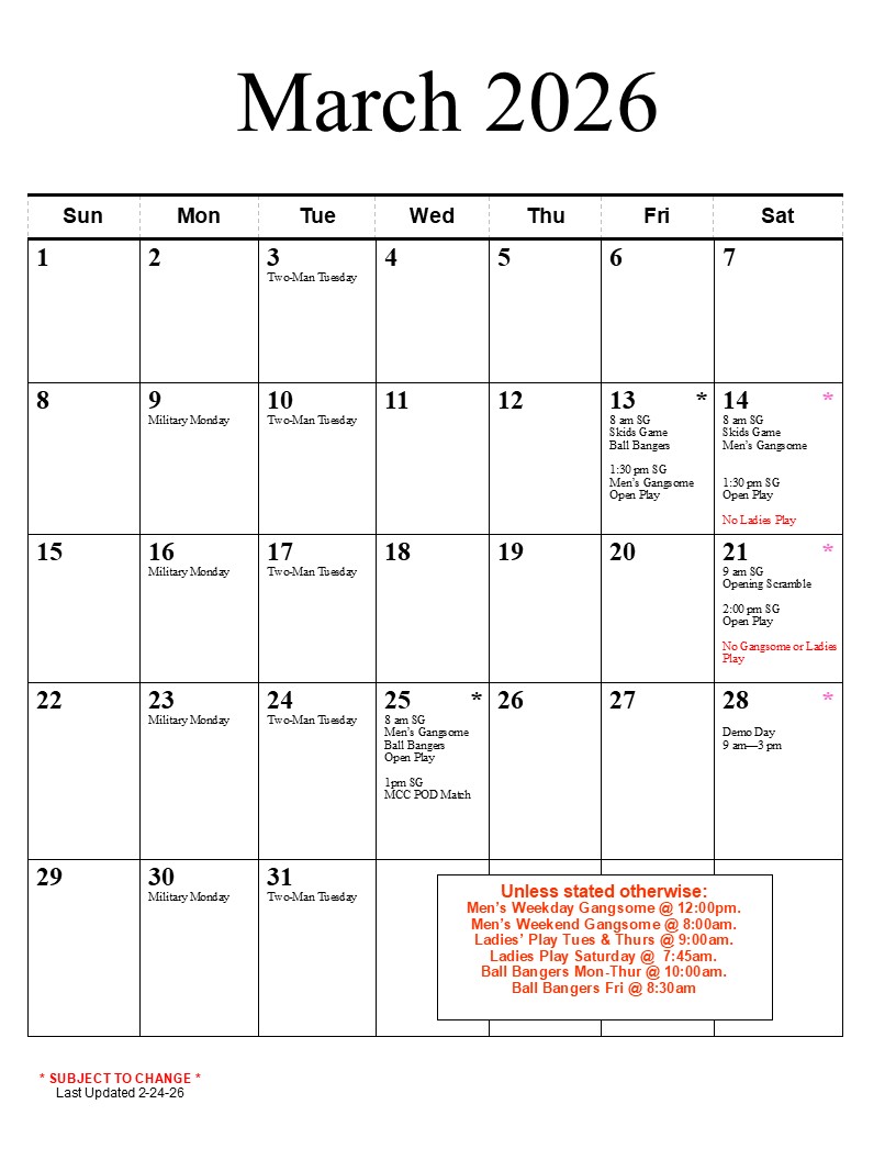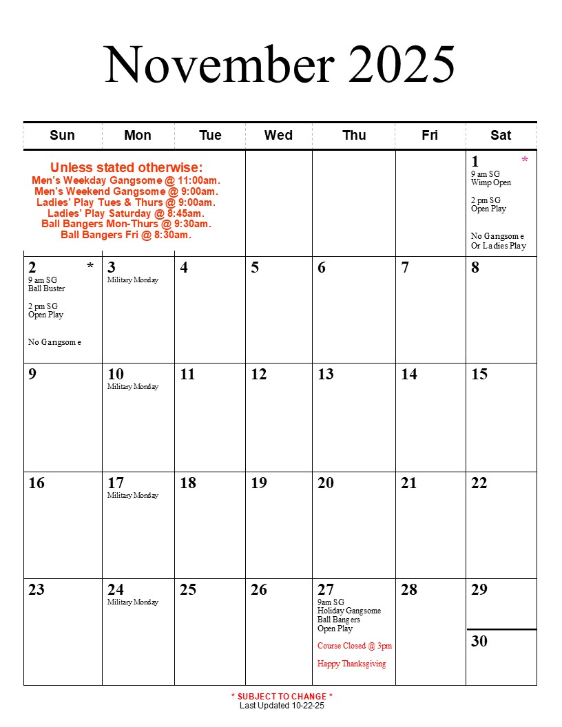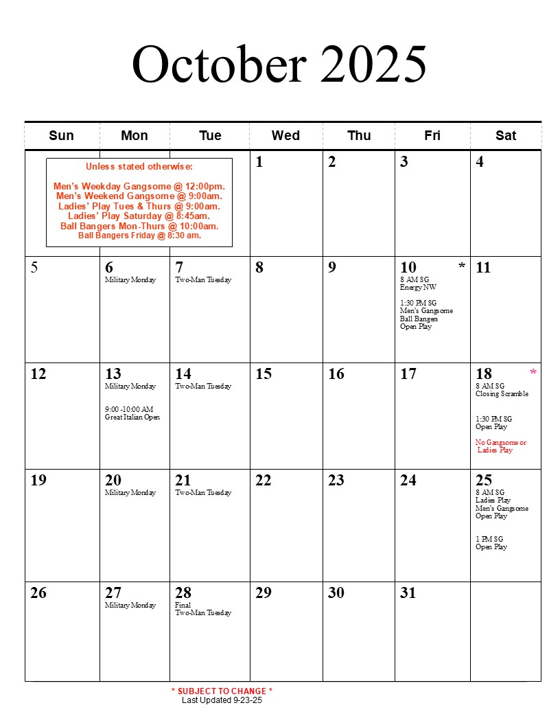 Please click here to book a tee time. All fees are charged upon check-in at the Golf Shop.