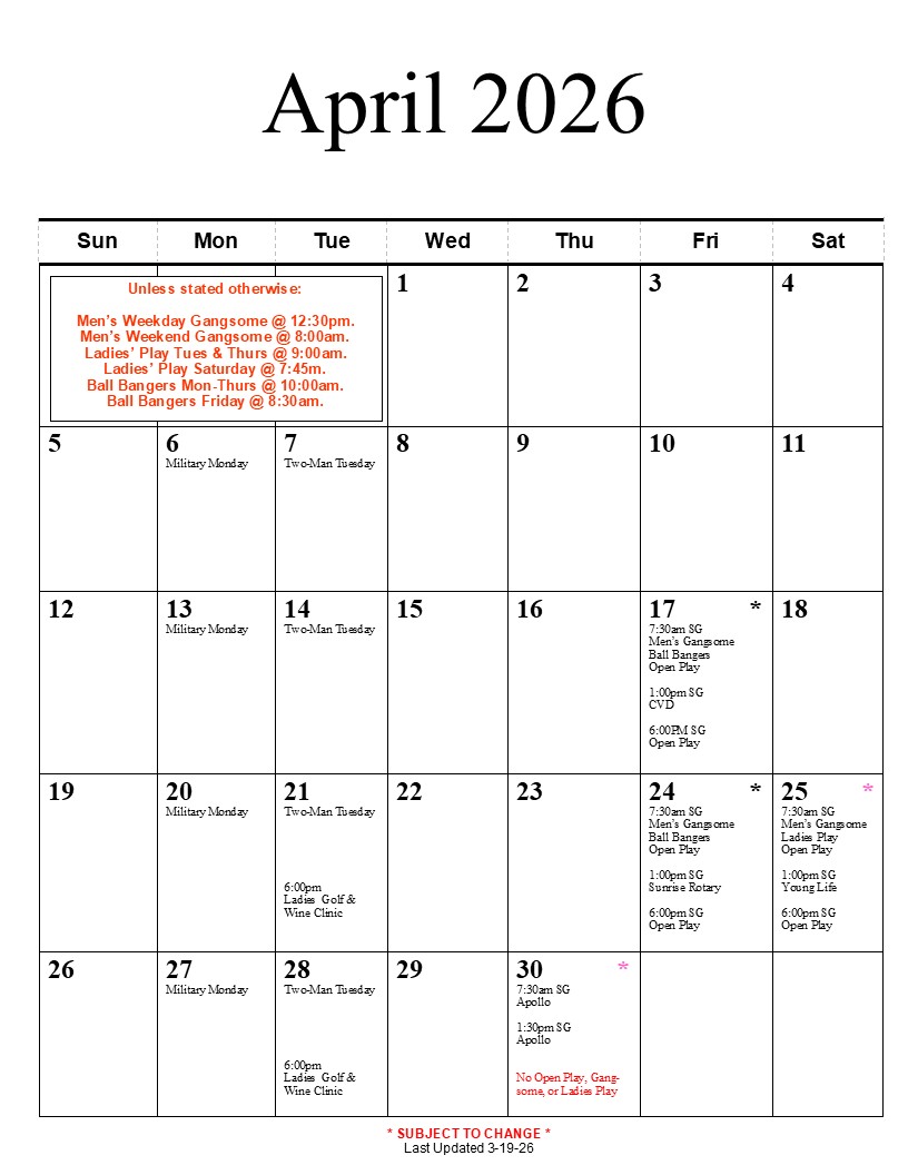 Please click here to book a tee time. All fees are charged upon check-in at the Golf Shop.